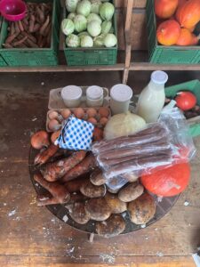 Dies ist bereits die 19. Ernteverteilung der laufenden Saison. Neben dem saisonalen Gemüse wie Kartoffeln, Zwiebeln, große und kleine Tomaten, Zucchini, Auberginen, Endiviensalat, Möhren und